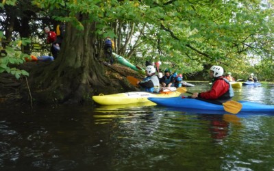 We had 13 members in 12 kayaks and one Canoe. Firstly we set off downstream to the top of the weir, from here you get a great view of Warwick castle, which is pretty impressive and a great photo opportunity.