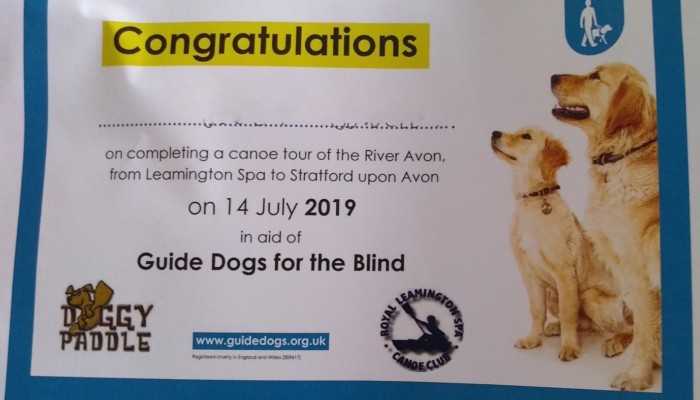 The Doggy Paddle is an annual event, open to anyone that is capable of paddling 18 miles on flat water. It is organised and run by Royal Leamington Spa Canoe Club and Guide Dogs for the Blind Association, as a fund raiser for Guide Dogs for the Blind Association.