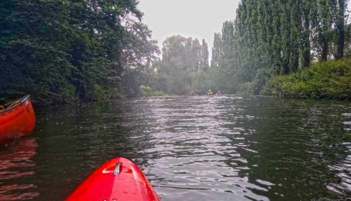 Before we commenced the paddle, we had a group photo taken and by 9:30am we were all on the water at Edmundscote Sports Field, just below the weir and heading downstream along the River Leam and onto the River Avon.